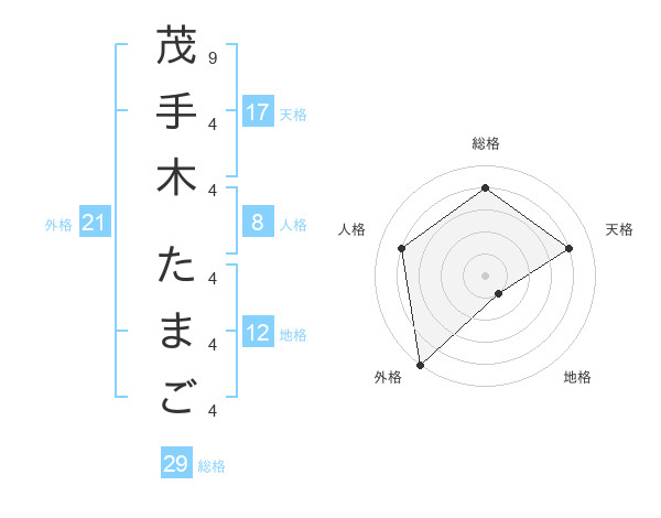 茂手木 たまごさんの総格は29画の4点!