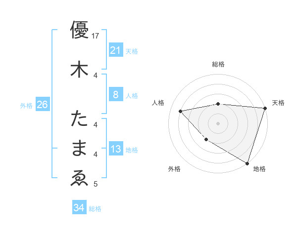 優木 たまゑさんの天格は21画の5点!
