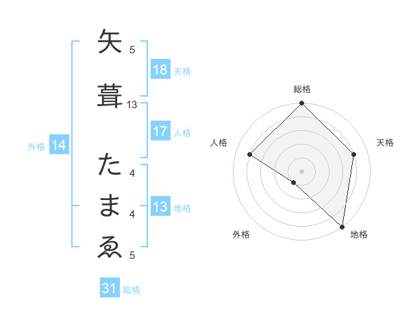 矢葺 たまゑさんを姓名の画数から五運を鑑定