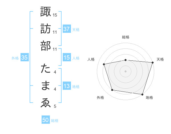 諏訪部 たまゑさんを姓名の画数から五運を鑑定