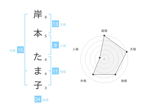 岸本 たま子さんを姓名の画数から五運を鑑定