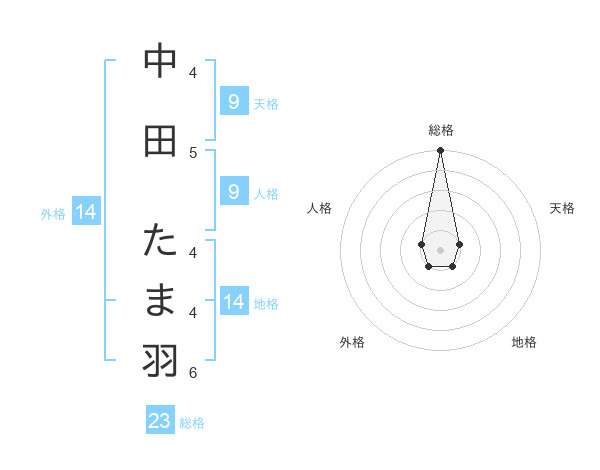 中田 たま羽さんの総格は23画の5点!