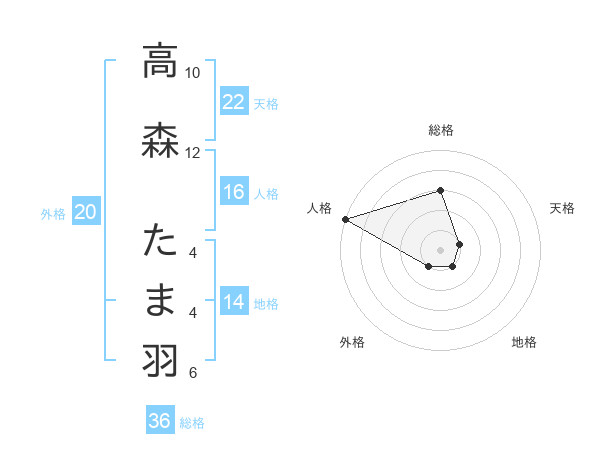 高森 たま羽さんを姓名の画数から五運を鑑定