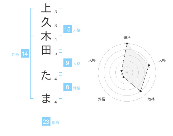 上久木田 たまさんの総格は23画の5点!