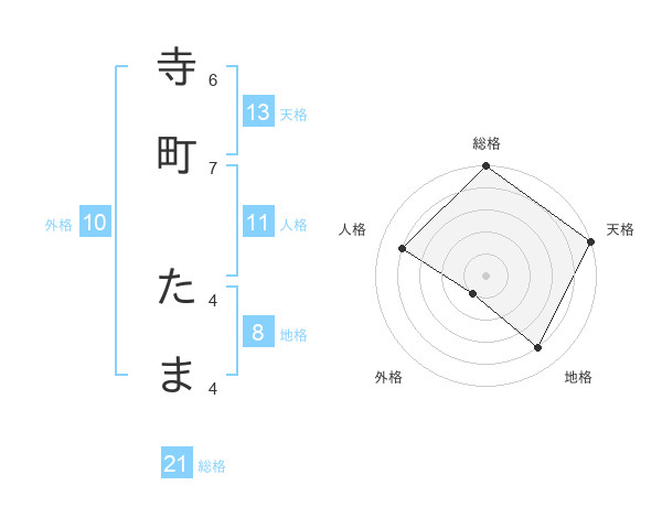 寺町 たまさんの総格は21画の5点!