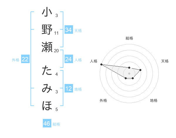 小野瀬 たみほさんを姓名の画数から五運を鑑定