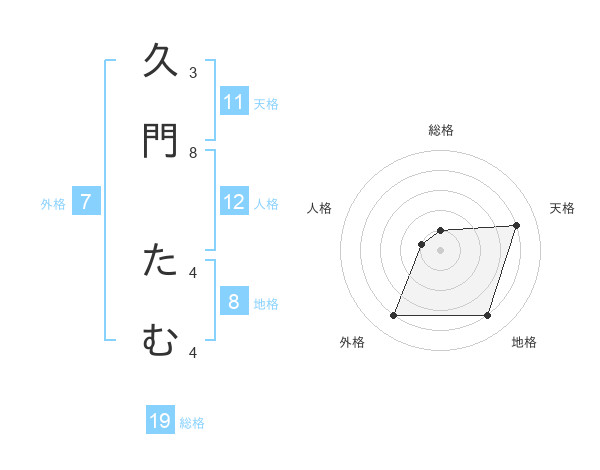 久門 たむさんの外格は7画の4点!