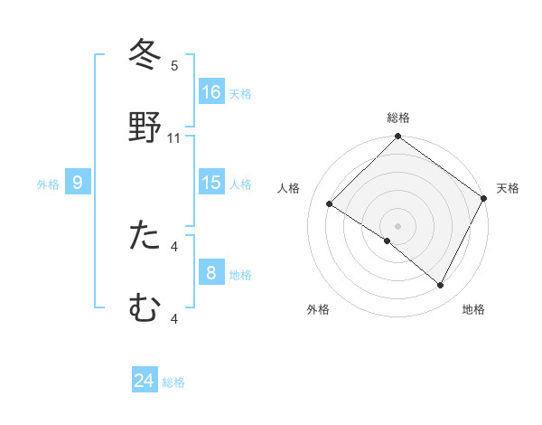 冬野 たむさんの天格は16画の5点!