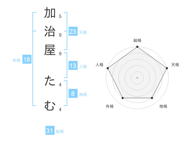 加治屋 たむさんを姓名の画数から五運を鑑定