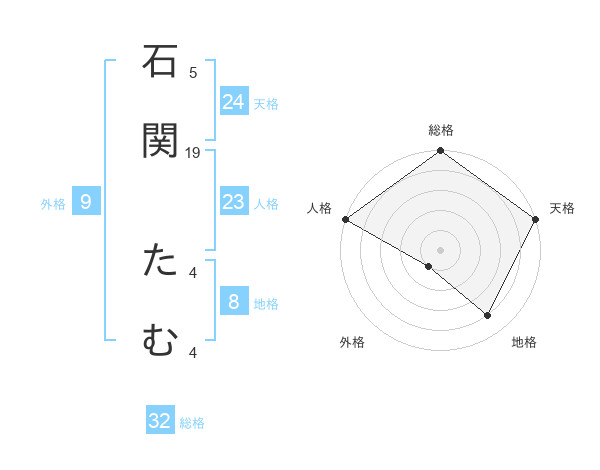 石関 たむさんの総格は32画の5点!