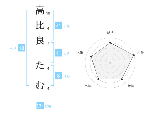 高比良 たむさんの天格は21画の5点!