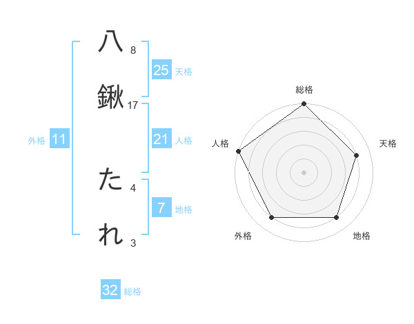 八鍬 たれさんの総格は32画の5点!