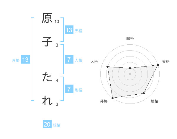 原子 たれさんの外格は13画の5点!