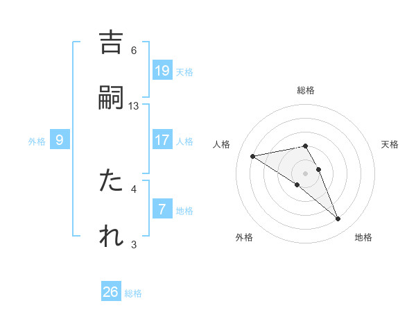 吉嗣 たれさんの総格は26画の2点!