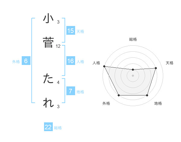 小菅 たれさんの総格は22画の1点!
