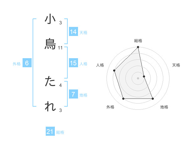 小鳥 たれさんを姓名の画数から五運を鑑定