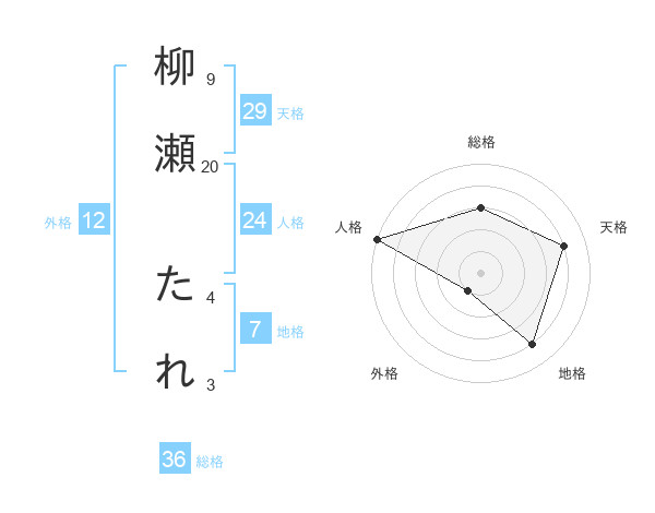 柳瀬 たれさんの天格は29画の4点!