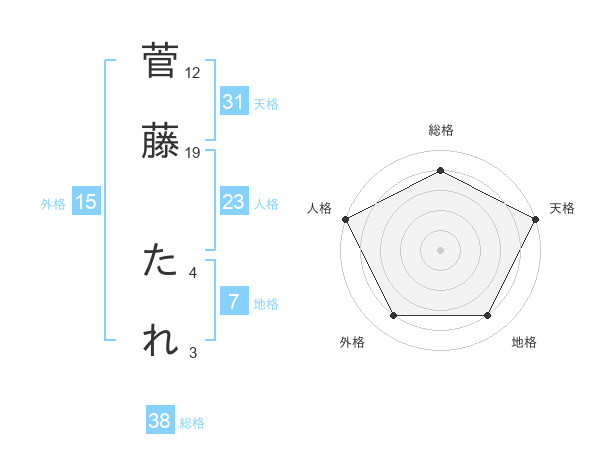 菅藤 たれさんの天格は31画の5点!