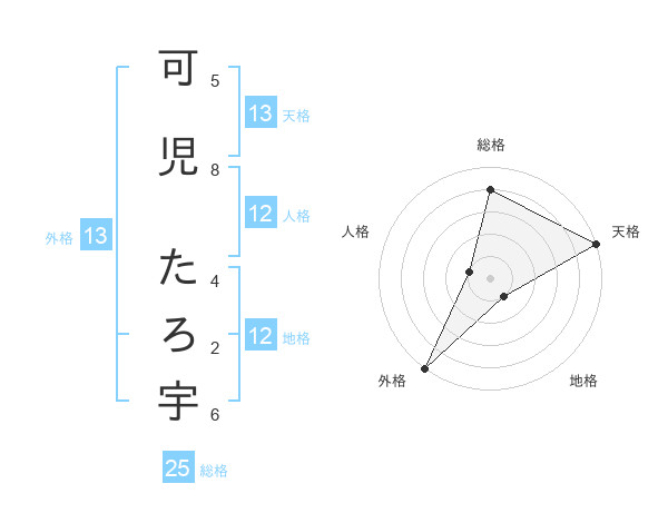 可児 たろ宇さんの外格は13画の5点!