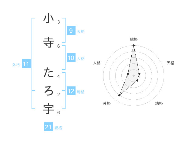 小寺 たろ宇さんの総格は21画の5点!