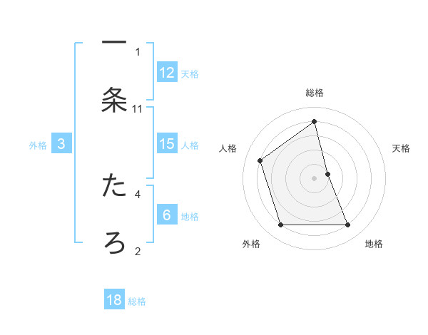 一条 たろさんの総格は18画の4点!
