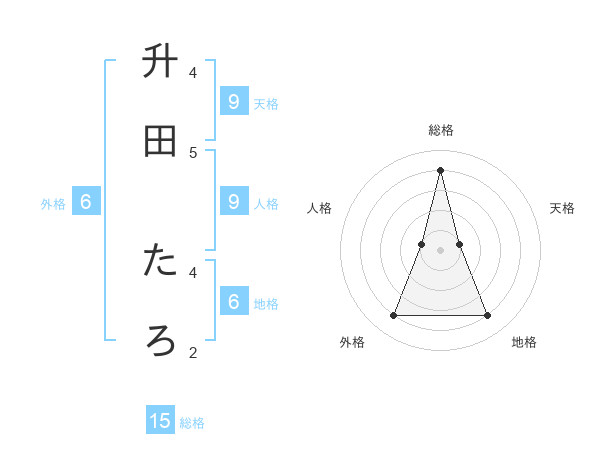 升田 たろさんの総格は15画の4点!