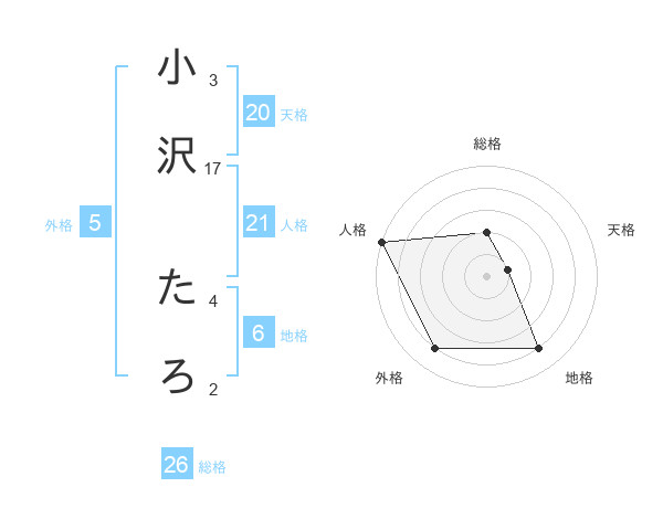 小沢 たろさんの総格は26画の2点!