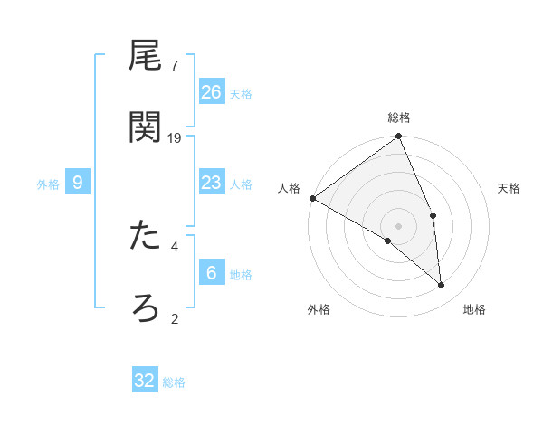 尾関 たろさんの天格は26画の2点!