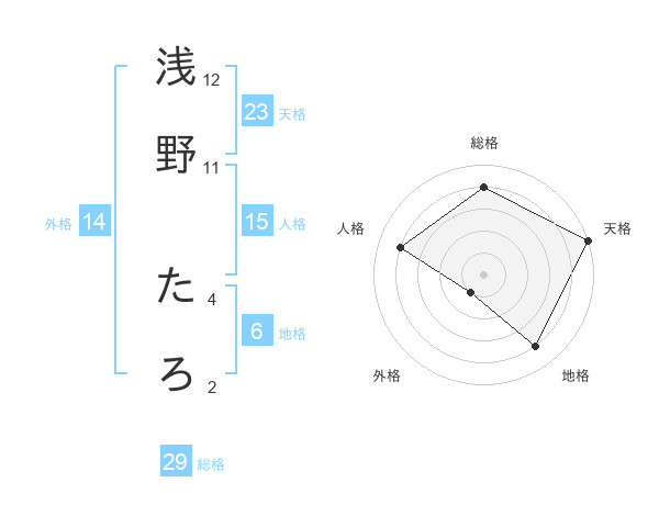 浅野 たろさんの天格は23画の5点!