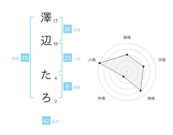 澤辺 たろさんの総格は42画の3点!