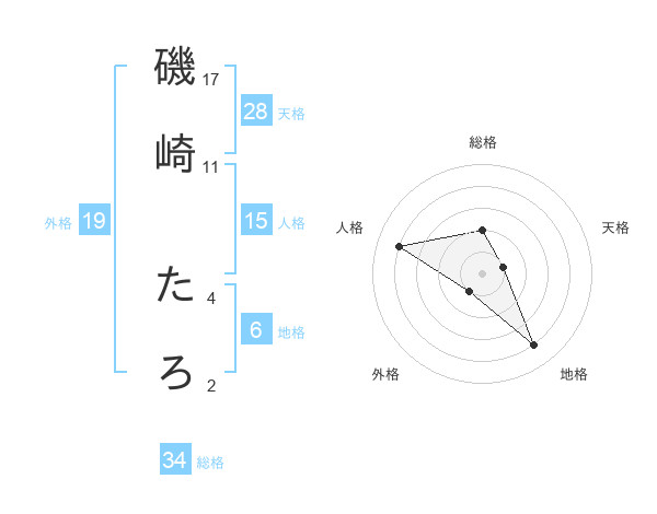 磯崎 たろさんの総格は34画の2点!