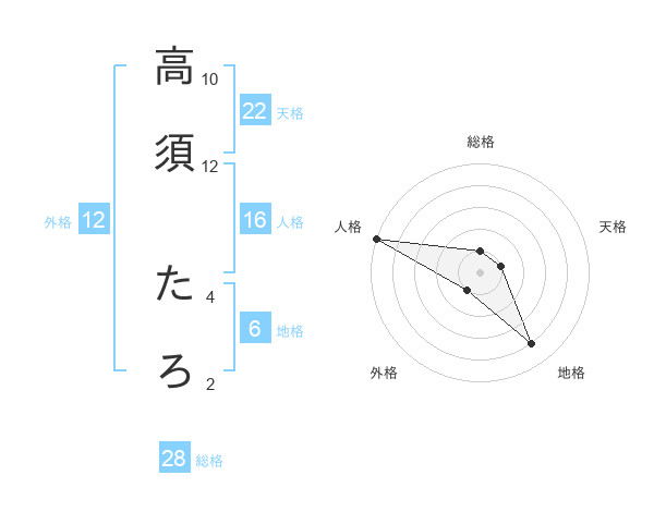 高須 たろさんの総格は28画の1点!