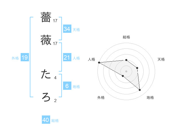 薔薇 たろさんを姓名の画数から五運を鑑定