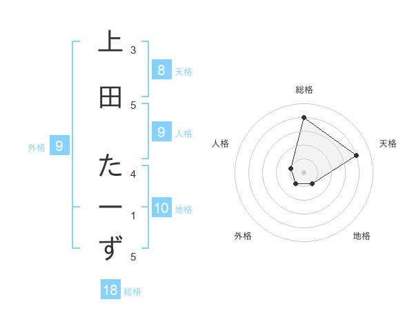 上田 たーずさんの天格は8画の4点!