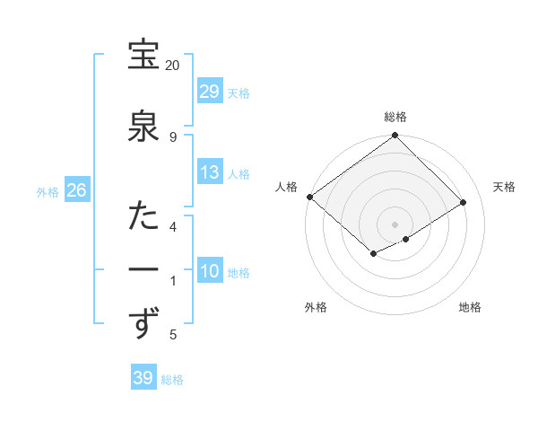 宝泉 たーずさんを姓名の画数から五運を鑑定