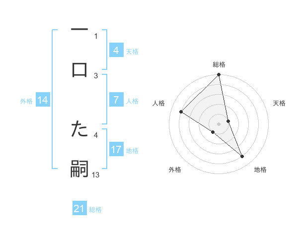 一口 た嗣さんの総格は21画の5点!