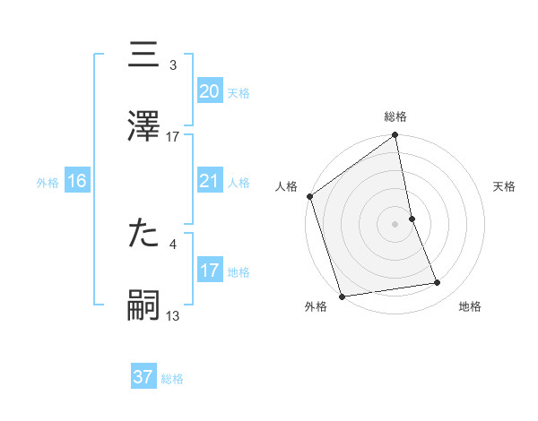 三澤 た嗣さんの総格は37画の5点!