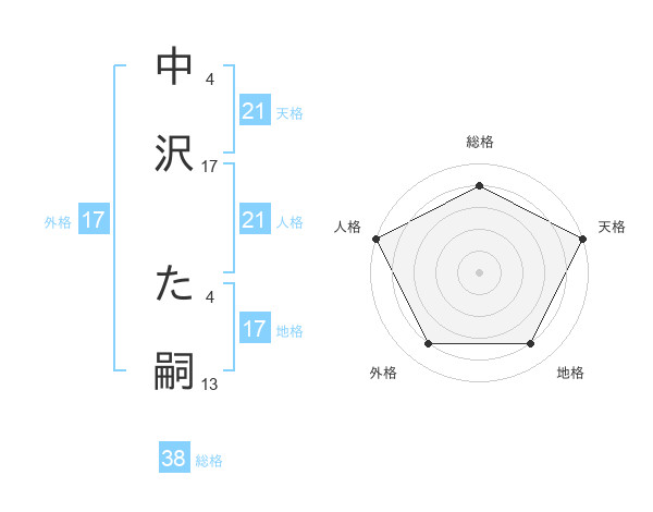 中沢 た嗣さんを姓名の画数から五運を鑑定