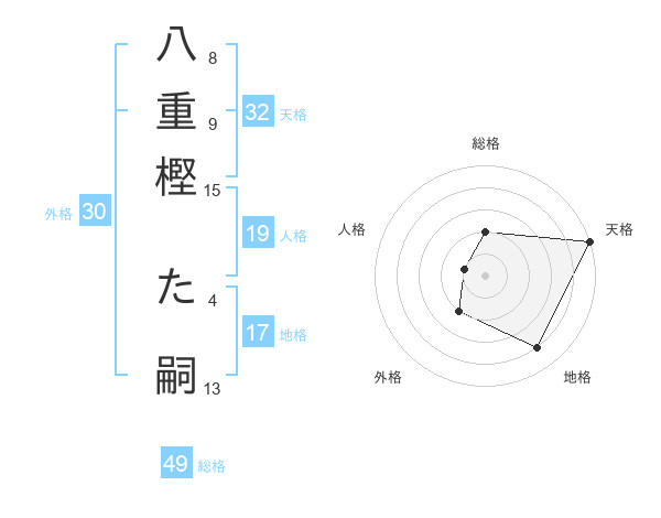八重樫 た嗣さんを姓名の画数から五運を鑑定