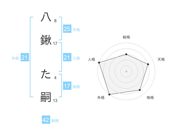 八鍬 た嗣さんの人格は21画の5点!