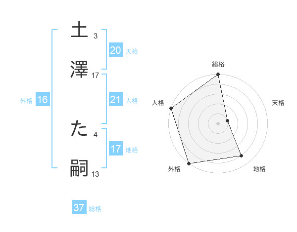 土澤 た嗣さんの地格は17画の4点!