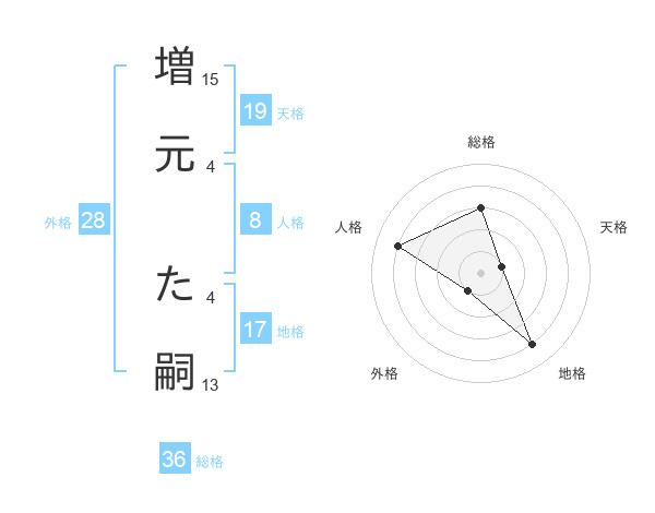 増元 た嗣さんを姓名の画数から五運を鑑定