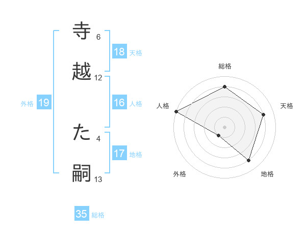 寺越 た嗣さんを姓名の画数から五運を鑑定