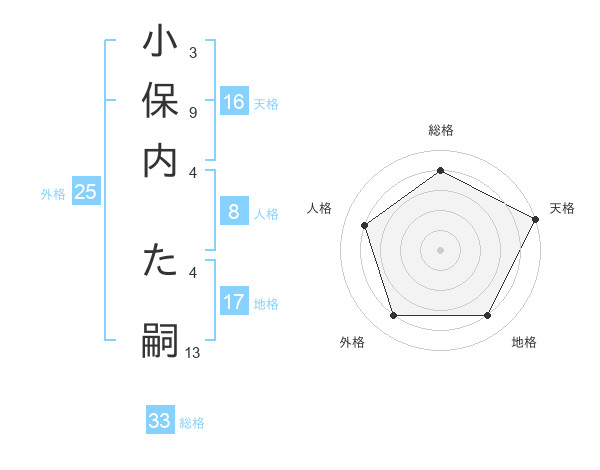 小保内 た嗣さんの総格は33画の4点!