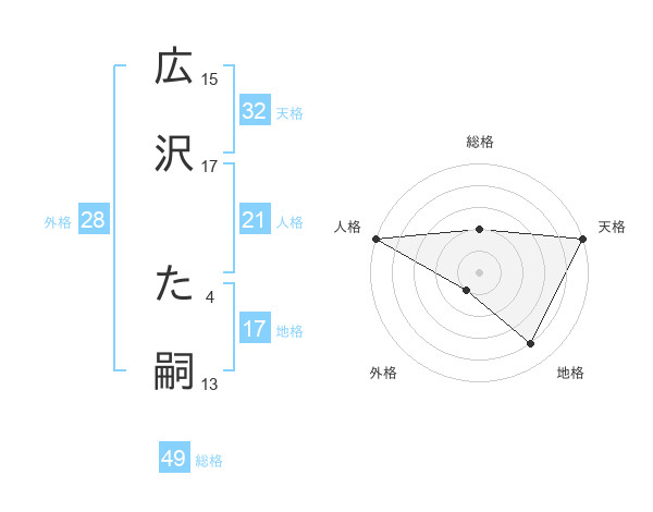 広沢 た嗣さんの天格は32画の5点!