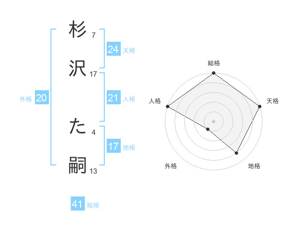 杉沢 た嗣さんを姓名の画数から五運を鑑定