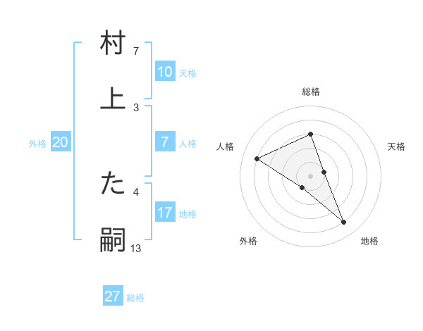 村上 た嗣さんを姓名の画数から五運を鑑定