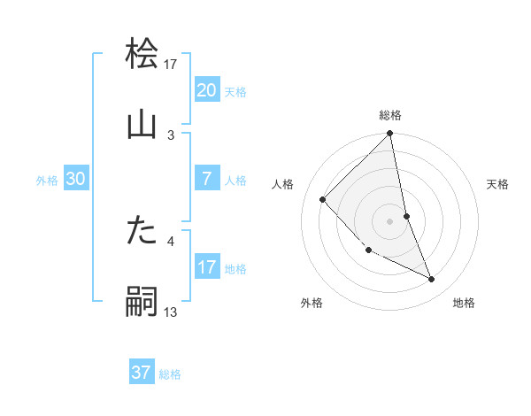 桧山 た嗣さんの総格は37画の5点!
