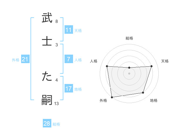 武士 た嗣さんの総格は28画の1点!