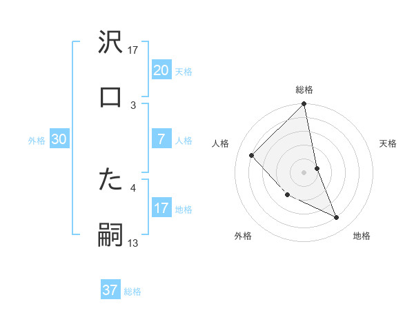 沢口 た嗣さんの総格は37画の5点!